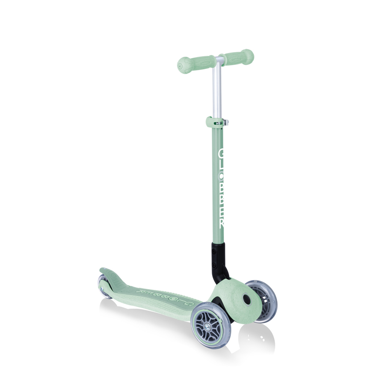 - Patented folding system enables folded and trolley mode on the toddler scooter. With an easy-to-use side push button, easily carry and store your GO UP ACTIVE ECOLOGIC in compact spaces.