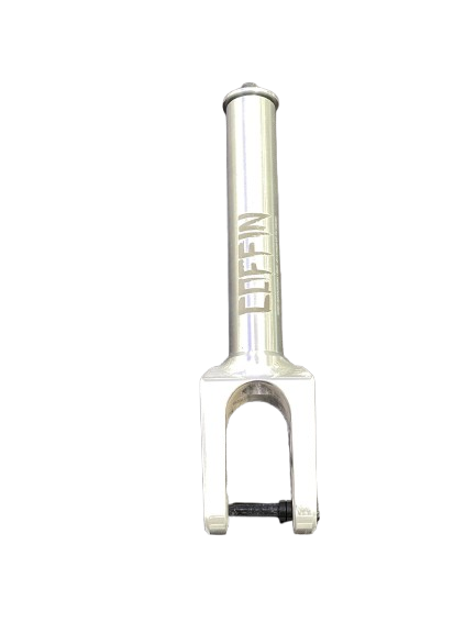 Bomb proof fork to fit our Coffin 30×110 wheel! 24mm spacers included. Recessed threads for the top bolt, so you can cut the steer tube if you want to avoid using headset spacers (especially on decks with low head tube).